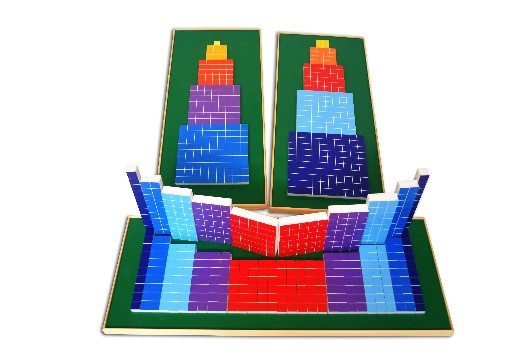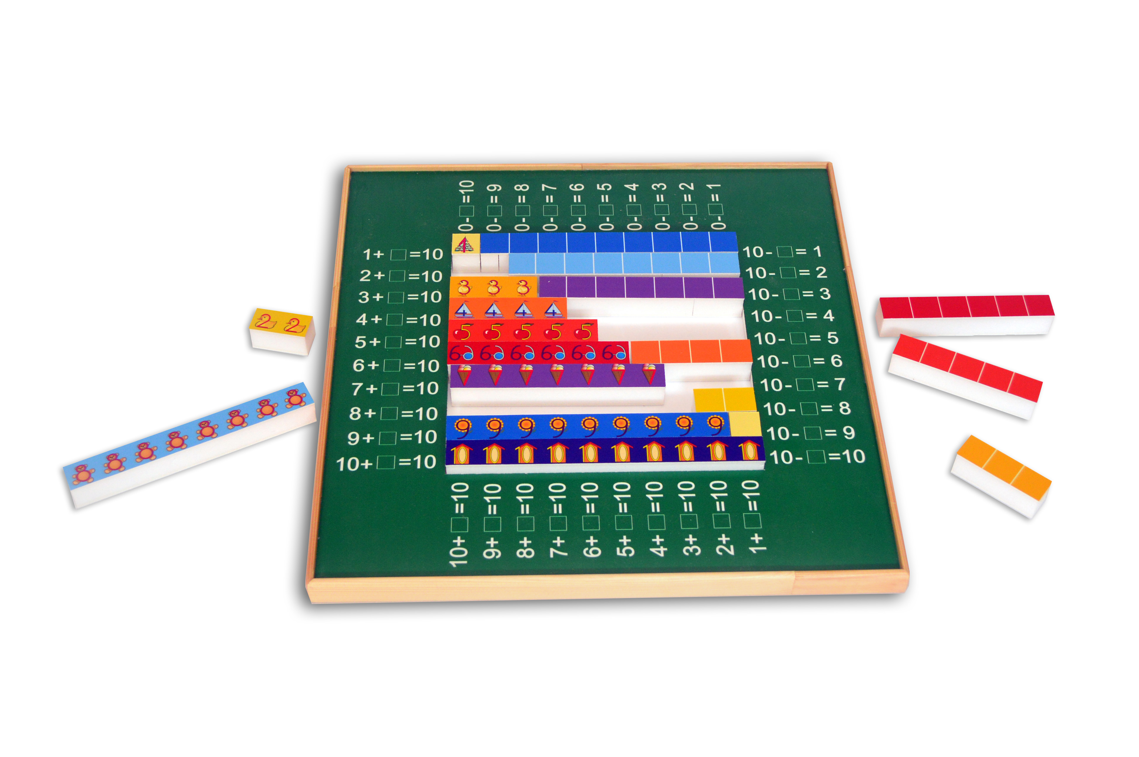 Slagalica: Sadrži prizmice i podlogu koja ima prazne prostore za dijelove koji idu u nizu, npr. za broj 11: 10 + 1, 9 + 2, 8 + 3 itd. Zatim opet simetrično natrag.