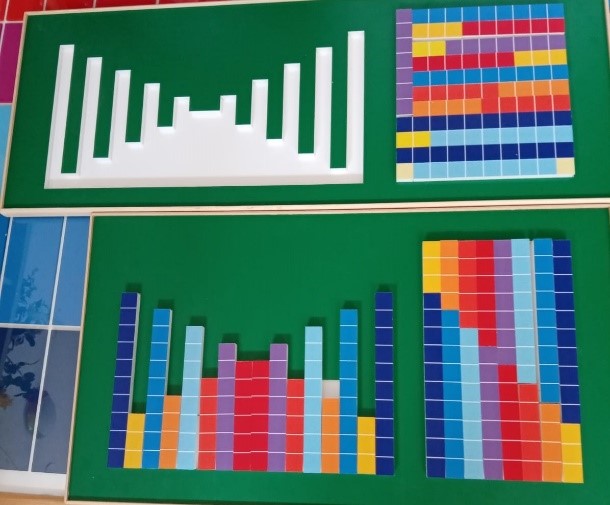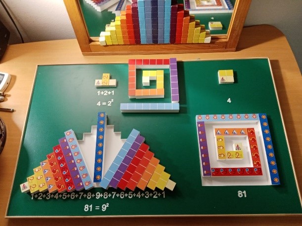 Slažući prizmice po veličini na točno određena mjesta, dijete prvo primjećuje na opipljiv način nizanje brojeva. Ono vizualno i konkretno usvaja količine. Nižući, usvaja brojenje, a onda i brojenje unatrag. Zatim slažući prizme u kvadrat, uči zbrajanje i oduzimanje unutar desetice ili unutar nekog drugog broja. Jednostavno slaganje u kvadrat zapravo je kvadriranje koje postaje uvod u množenje. Sve je geometrijski i aritmetički uočljivo.