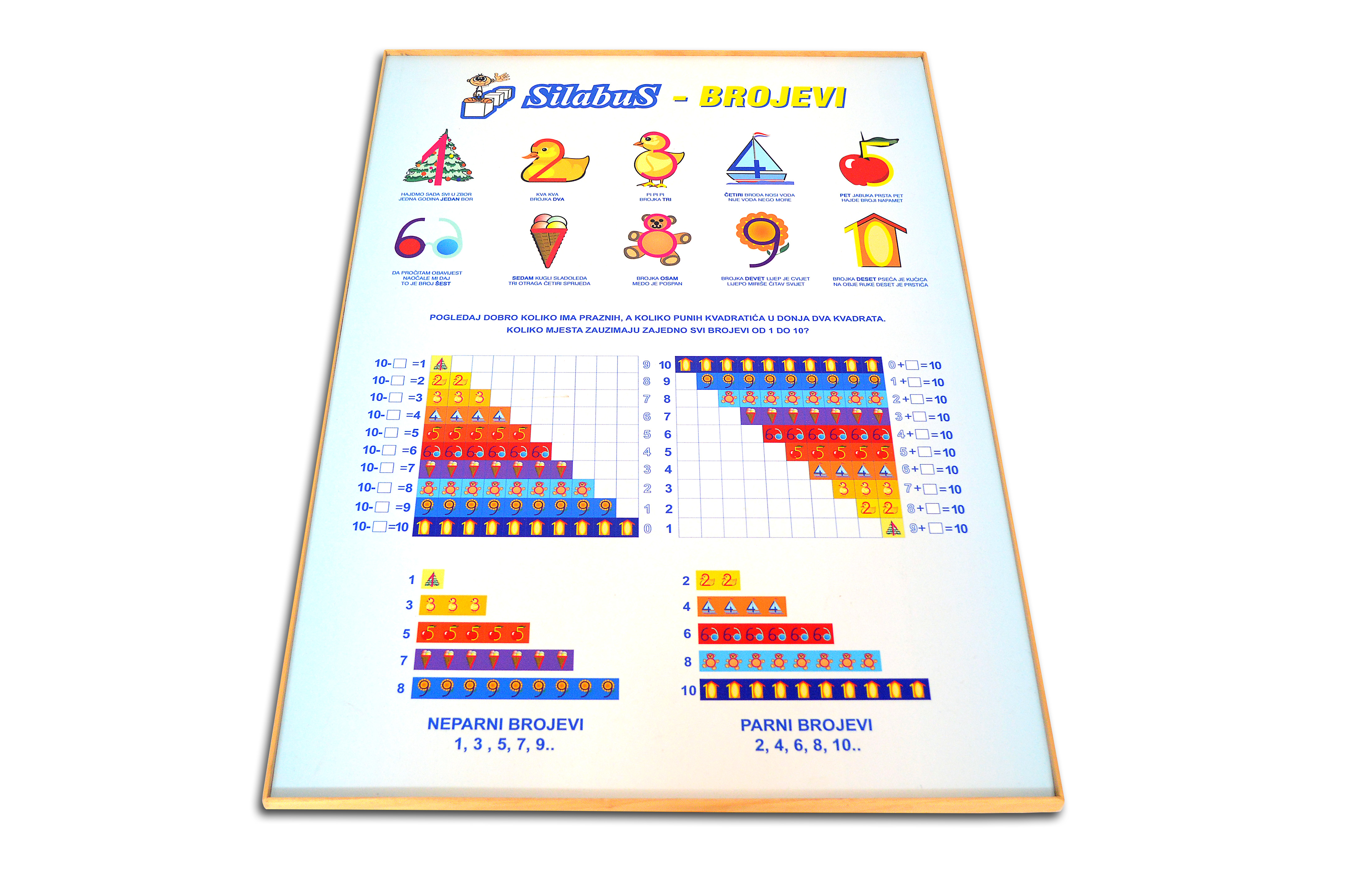 SilabuS Tablica množenja s brojevima sredstvo je koje djeci približava svijet brojeva, bilo predškolskoj koja se tek susreću s brojevima, bilo školskoj u svladavanju množenja i dijeljenja i drugih viših matematičkih sadržaja. Tablica množenja preko Silabus boja, svojstva slaganja i ostalih specifičnosti koje su opisane u uputama, čini računanje zabavom i igrom.