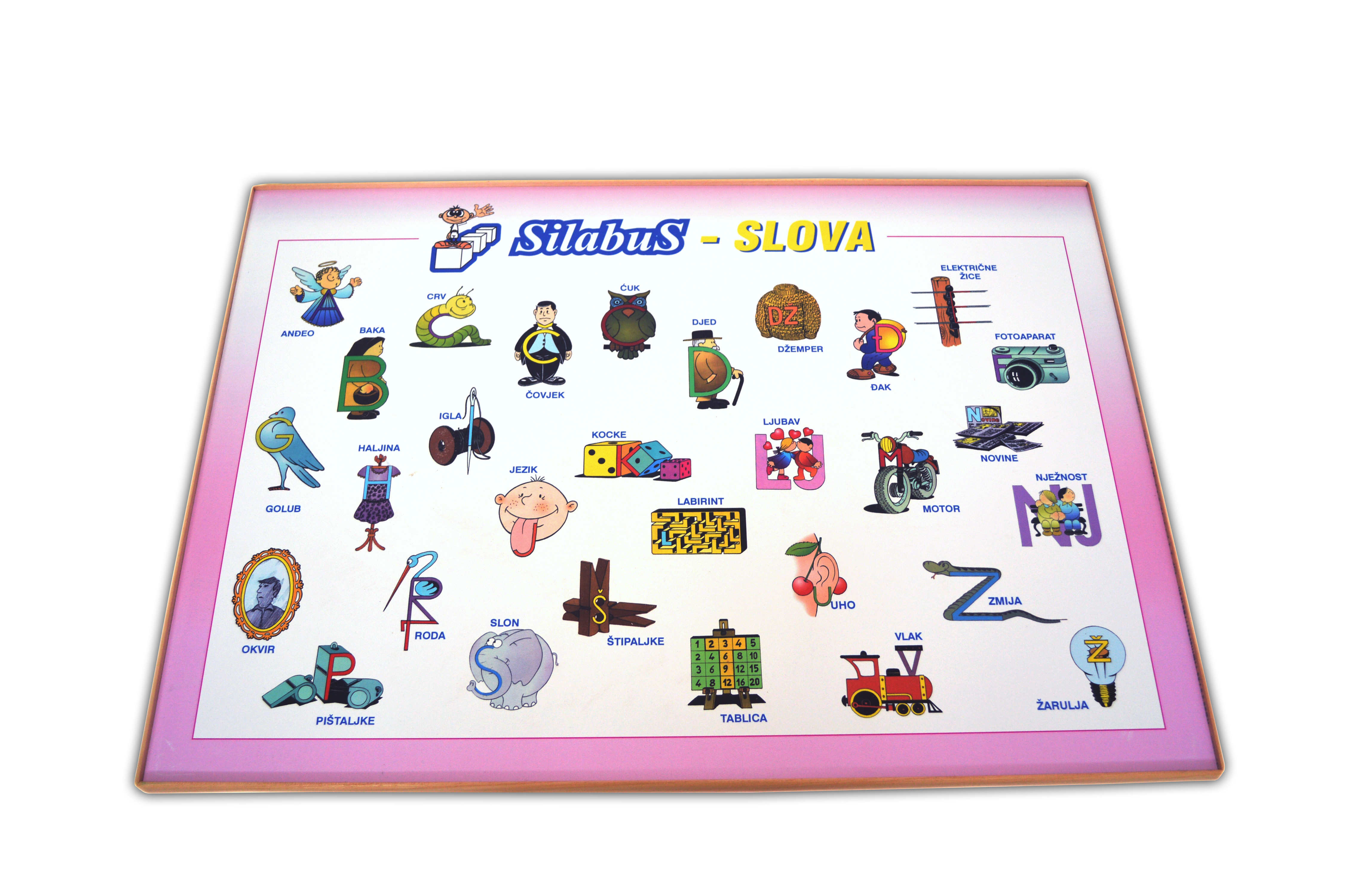 Slikovnica SilabuS Slova i imena služi za učenje čitanja i pisanja slova te za globalno čitanje i pisanje vlastitih imena. Svako slovo ima pripadajući lik koji je oblikom podudaran s oblikom slova i koji je ujedno predmet, životinja ili osoba čiji naziv počinje tim istim glasom. Tako su dva principa spojena u jedan: poznati i inače korišteni princip slovo za prvi glas riječi i drugi vizualni princip oblik slova u liku.