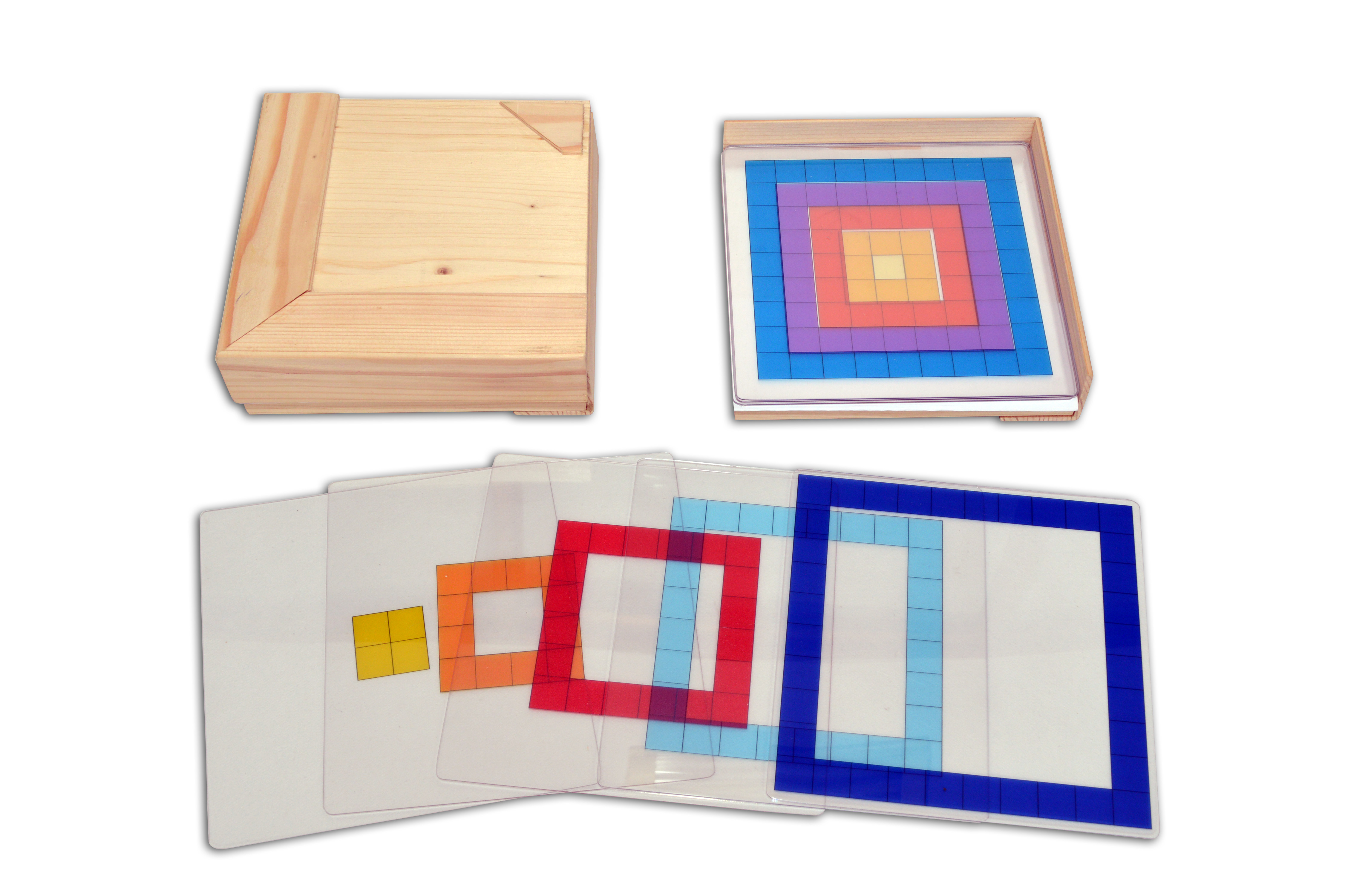 Slagalica: Sadrži udubljenu podlogu – utore i dijelove u obliku kvadrata prvih 10 brojeva za slaganje. Podijeljeni su u parne i neparne kvadrate.