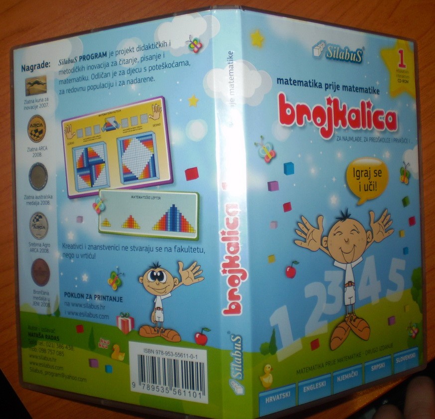 Interaktivni CD u dva dijela (dva CD-a, za predškolce, za školarce, a ima ponešto i za roditelje i učiteljejezici: govore dječaci na svom materinjem, engleskom, njemačkom, slovenskom I hrvatskom jeziku. Brojne korisne igre i slagalice, zbrajanje i oduzimanje do 10. Inovativni način bitnog uvoda u množenje – matematički leptir. moguća je narudžba na www.silabus.hr u fizičkom obliku CD roma, a moguće ga je dobiti preuzimanjem.